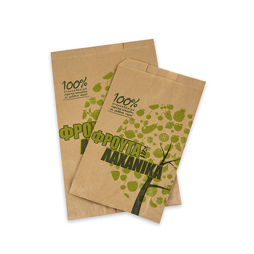 Χαρτοσακούλα kraft καφέ μαναβικής 20×34 με σχέδιο είναι ιδανική για φρούτα, λαχανικά και άλλα προϊόντα λιανικής. Ανθεκτική και πρακτική, προσφέρει φυσική και επαγγελματική εμφάνιση.
