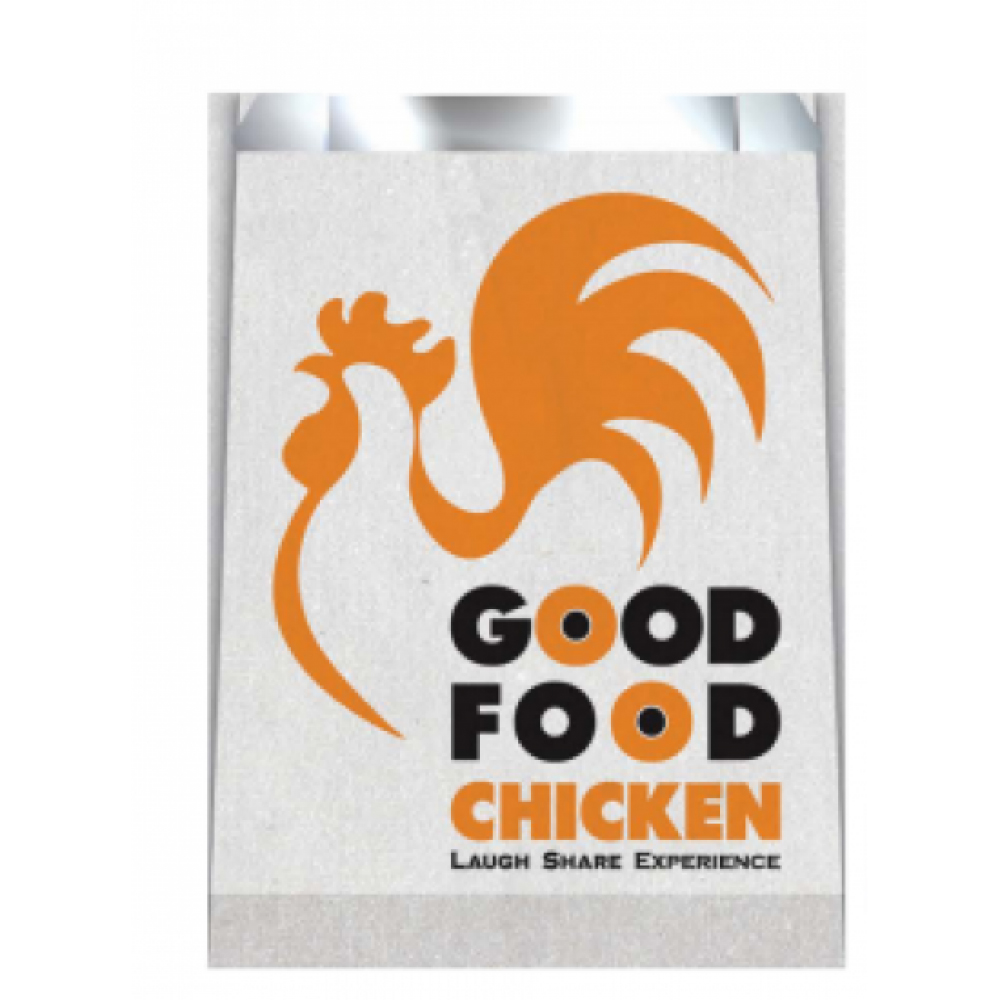 Χαρτοσακούλα με αλουμίνιο Good Food Chicken 17×33, ειδικά σχεδιασμένη για ψητά προϊόντα, όπως κοτόπουλο, σουβλάκια, πατάτες, πίτες και άλλα είδη από ψητοπωλεία. Η κατασκευή της είναι ανθεκτική σε λίπη και υγρασία, εξασφαλίζοντας ασφαλή μεταφορά των προϊόντων. Ιδανική για ψητοπωλεία, σουβλατζίδικα και ταβέρνες που θέλουν να προσφέρουν ποιοτική συσκευασία. Προστατεύει τα τρόφιμα από διαρροές και διατηρεί τη φρεσκάδα τους.