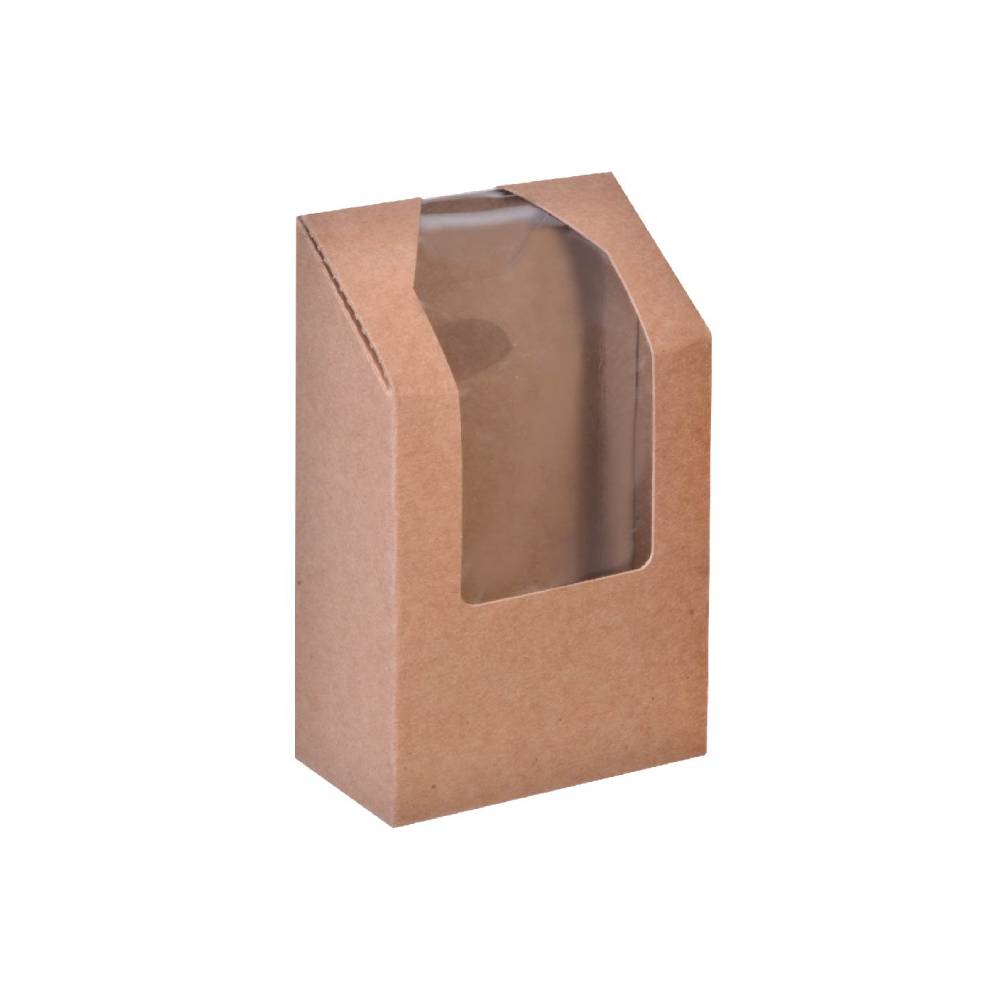 Το κουτί χάρτινο κραφτ τορτίγιας με παράθυρο 9.5x5x11.5cm είναι η ιδανική λύση για την παρουσίαση και μεταφορά αραβικής πίτας και τορτίγιας. Το διάφανο παράθυρο στο επάνω μέρος επιτρέπει στους πελάτες να βλέπουν το περιεχόμενο, αναδεικνύοντας το προϊόν. Κατασκευάζεται από πρωτογενές χαρτόνι με εσωτερική επίστρωση πολυαιθυλενίου (PE), κατάλληλο για επαφή με τρόφιμα. Η συναρμολόγηση είναι εύκολη χάρη στο σύστημα easy open, εξοικονομώντας χρόνο στην προετοιμασία. Ιδανικό για super market, catering, cafe, fast food και εστιατόρια.