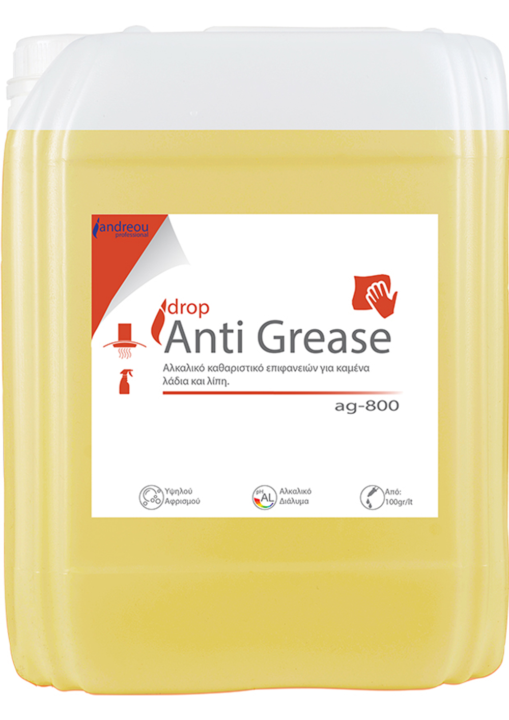 Λιποκαθαριστικό φούρνων και εστιών drop anti grease 5lt, υγρό καθαρισμού υψηλής αλκαλικότητας, ιδανικό για καμένα λίπη και λάδια σε ανθεκτικές επιφάνειες. Διαλύει τη βρωμιά σε βάθος και προσφέρει ελεγχόμενο αφρισμό για εύκολη χρήση. Οικονομικό στη χρήση, χάρη στην υψηλή απόδοσή του.