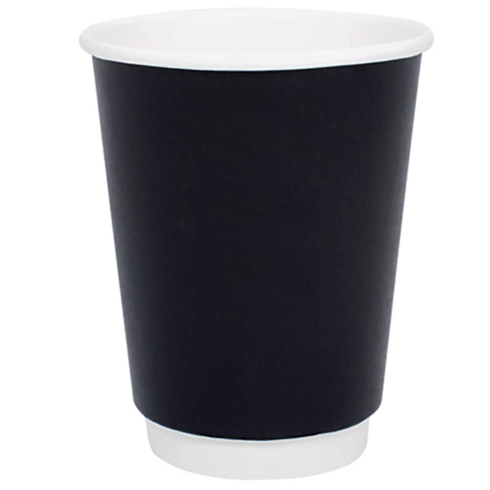 Ποτήρι χάρτινο διπλού τοιχώματος μαύρο 8oz, κατάλληλο για ζεστά και κρύα ροφήματα. Το χάρτινο ποτήρι διπλού τοιχώματος διαθέτει Premium ποιότητα καθώς έχει διπλή επένδυση, με αποτέλεσμα να κρατάει το ρόφημα ζεστό χωρίς να μεταφέρεται η υψηλή θερμοκρασία στα χέρια. Ενδείκνυται για όλους τους χώρους εστίασης, delivery και take away. Ιδανικό για μονό cappuccino cafe, γαλλικό καφέ, ελληνικό καφέ. Συνδυάζεται με καπάκι πιπίλα για ζεστά ροφήματα ή καπάκι μπομπέ για κρύα ροφήματα.