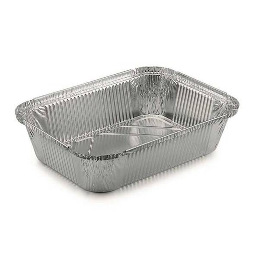 Σκεύος αλουμινίου R64L/N204 μεγάλου μεγέθους, ιδανικό για ασφαλή συσκευασία και μεταφορά φαγητού. Κατάλληλο για χρήση σε φούρνους έως 220°C. Συμβατό με χάρτινο καπάκι R64L για πρακτικό κλείσιμο.