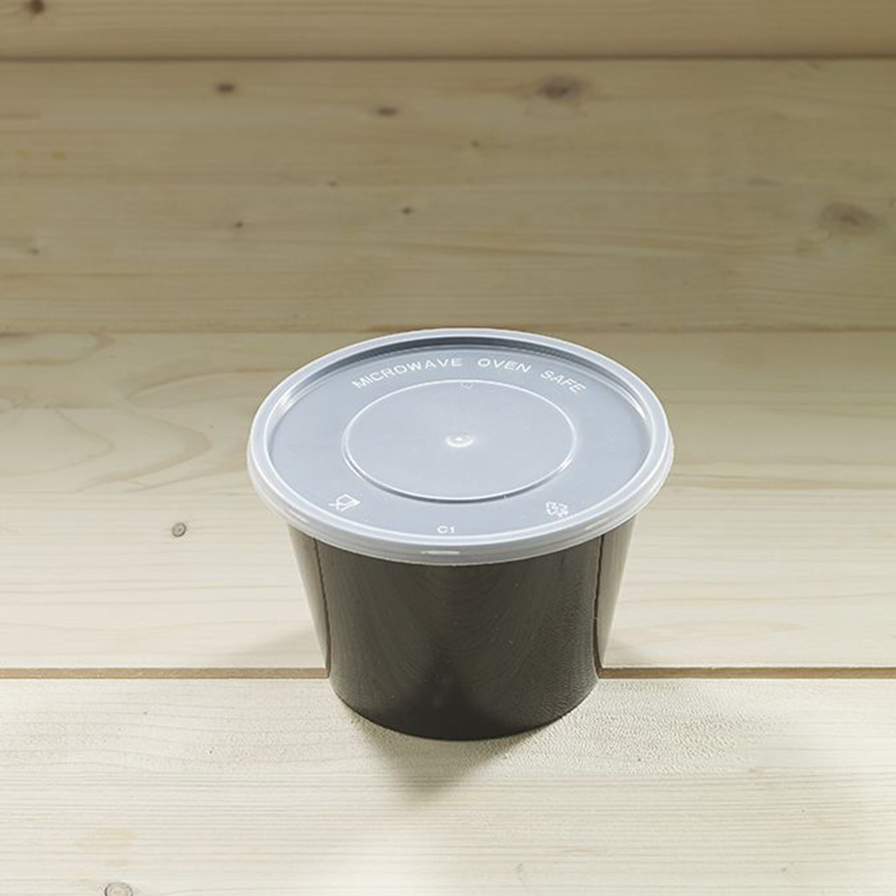 Το σκεύος microwave σούπας μαύρο στρογγυλό χωρητικότητας 590cc με καπάκι είναι ιδανικό για σούπες και ζεστά φαγητά. Κατάλληλο για φούρνο μικροκυμάτων (χωρίς το καπάκι) και είναι σχεδιασμένο για να παρέχει ευκολία στη συσκευασία και μεταφορά των γευμάτων.
