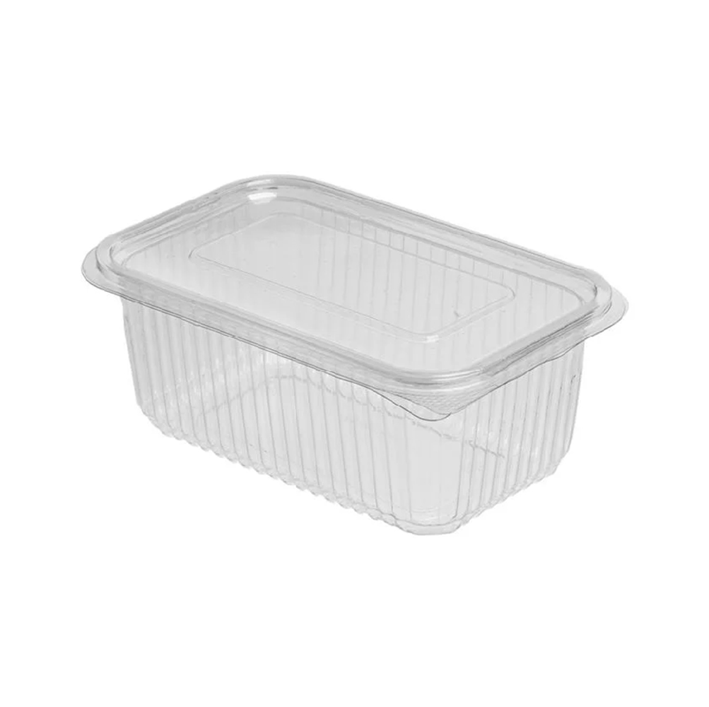 Σκεύος πλαστικό παραλληλόγραμμο διάφανο 1000cc μιας χρήσης PET με ενσωματωμένο διάφανο καπάκι και χωρητικότητα 1000ml για άνετη και ασφαλή χρήση. Διαθέτει χωρητικότητα 1000ml, ιδανική για μερίδες φαγητού, σαλάτες ή γλυκά. Το ανθεκτικό υλικό του εξασφαλίζει σταθερότητα και προστασία κατά τη μεταφορά. Η πλήρως διάφανη επιφάνεια αναδεικνύει το περιεχόμενο, ιδανική για επαγγελματική παρουσίαση. Κατάλληλο για επαφή με τρόφιμα σύμφωνα με τα πρότυπα υγιεινής. Διατίθεται σε συσκευασία 100 τεμαχίων για επαγγελματική χρήση.