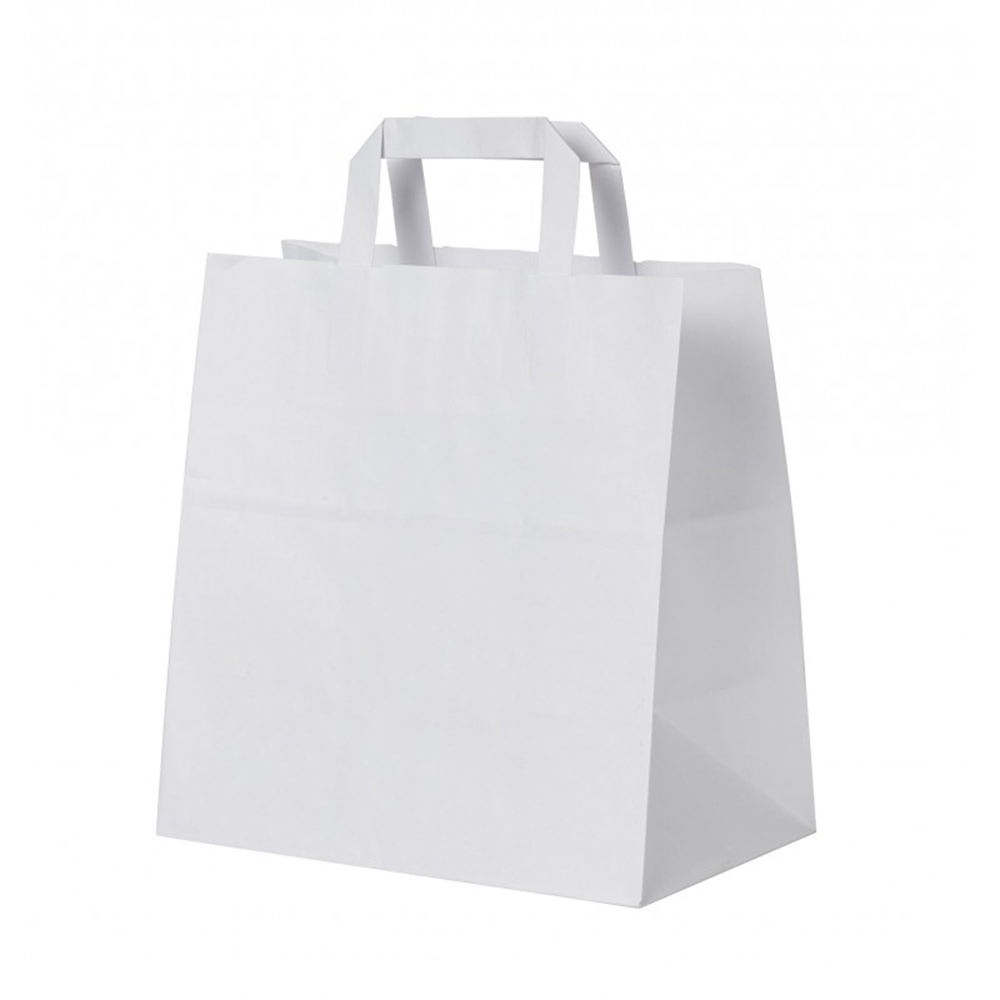 Η τσάντα χάρτινη λευκό 26x17x29cm είναι ιδανική για ψητοπωλεία, ταβέρνες και εστιατόρια με υπηρεσίες take away και delivery. Κατασκευασμένη από ανθεκτικό, ανακυκλώσιμο χαρτί με πλακέ χερούλι για ασφαλή μεταφορά. Μια οικολογική και κομψή επιλογή για επαγγελματίες εστίασης.